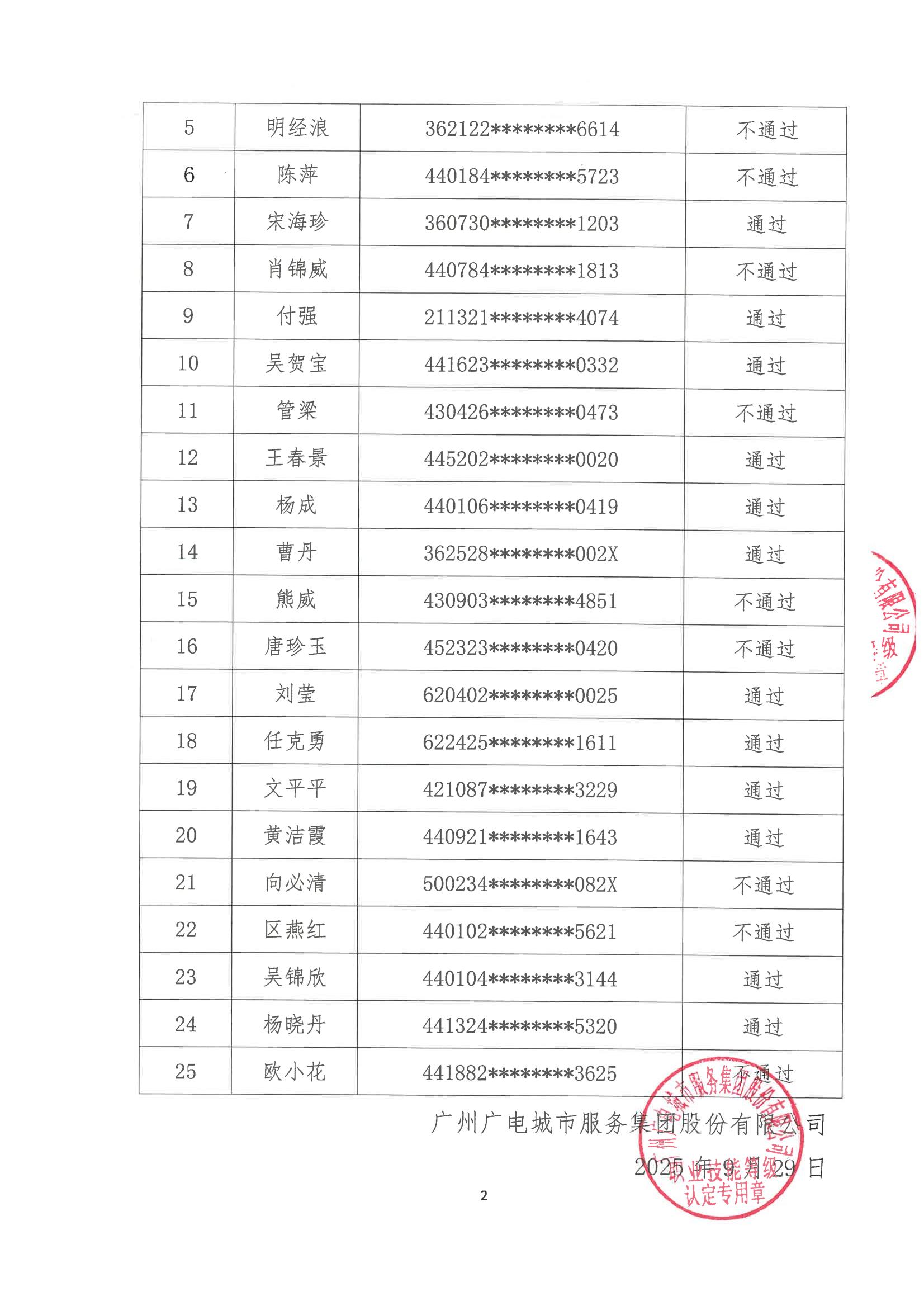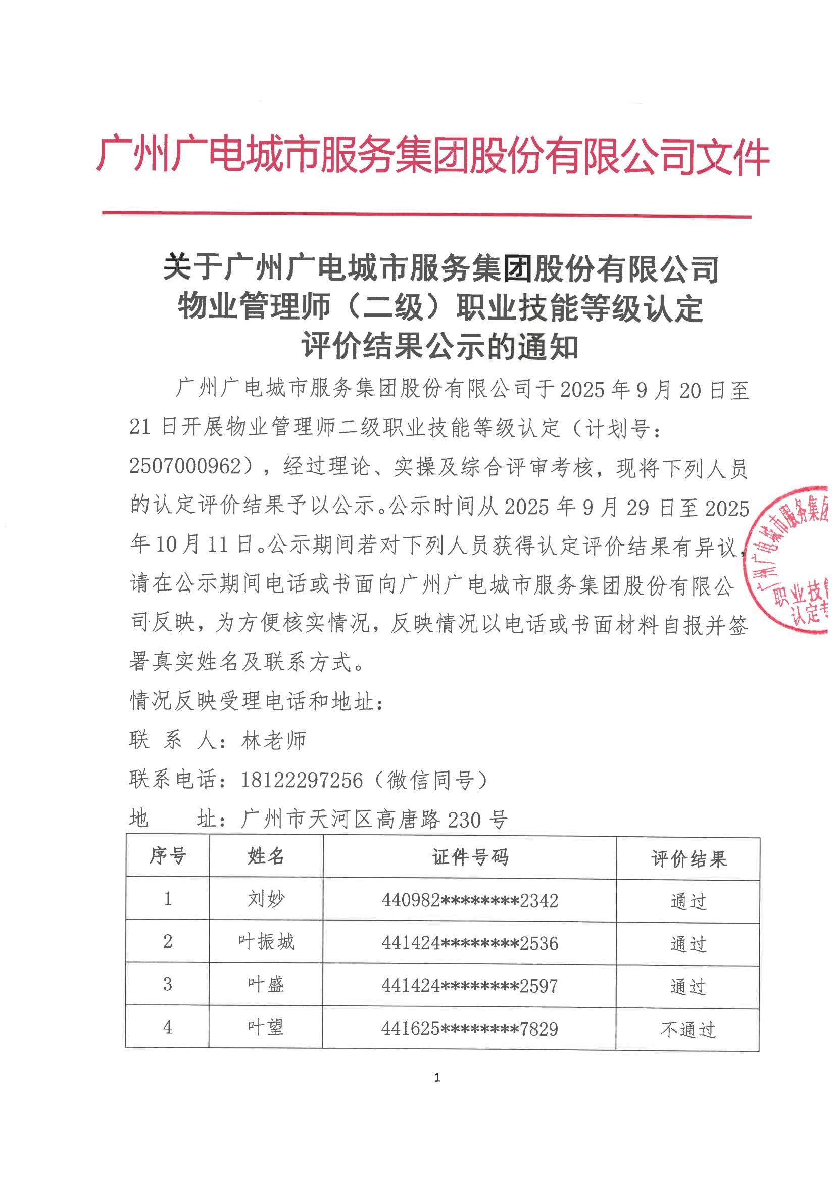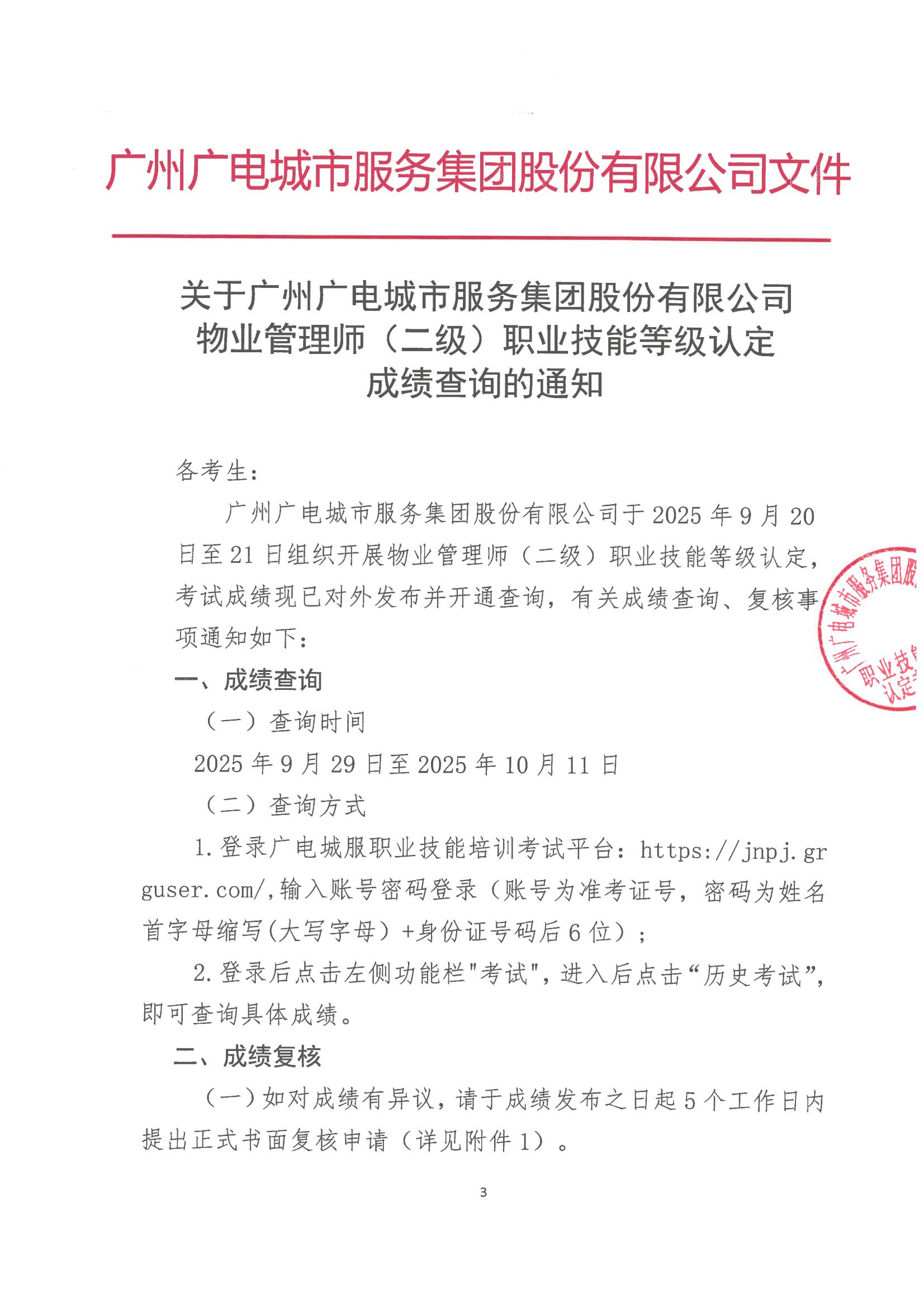 广州广电城市服务集团股份有限公司2507000962物业管理师(二级)认定结果公示和成绩查询通知