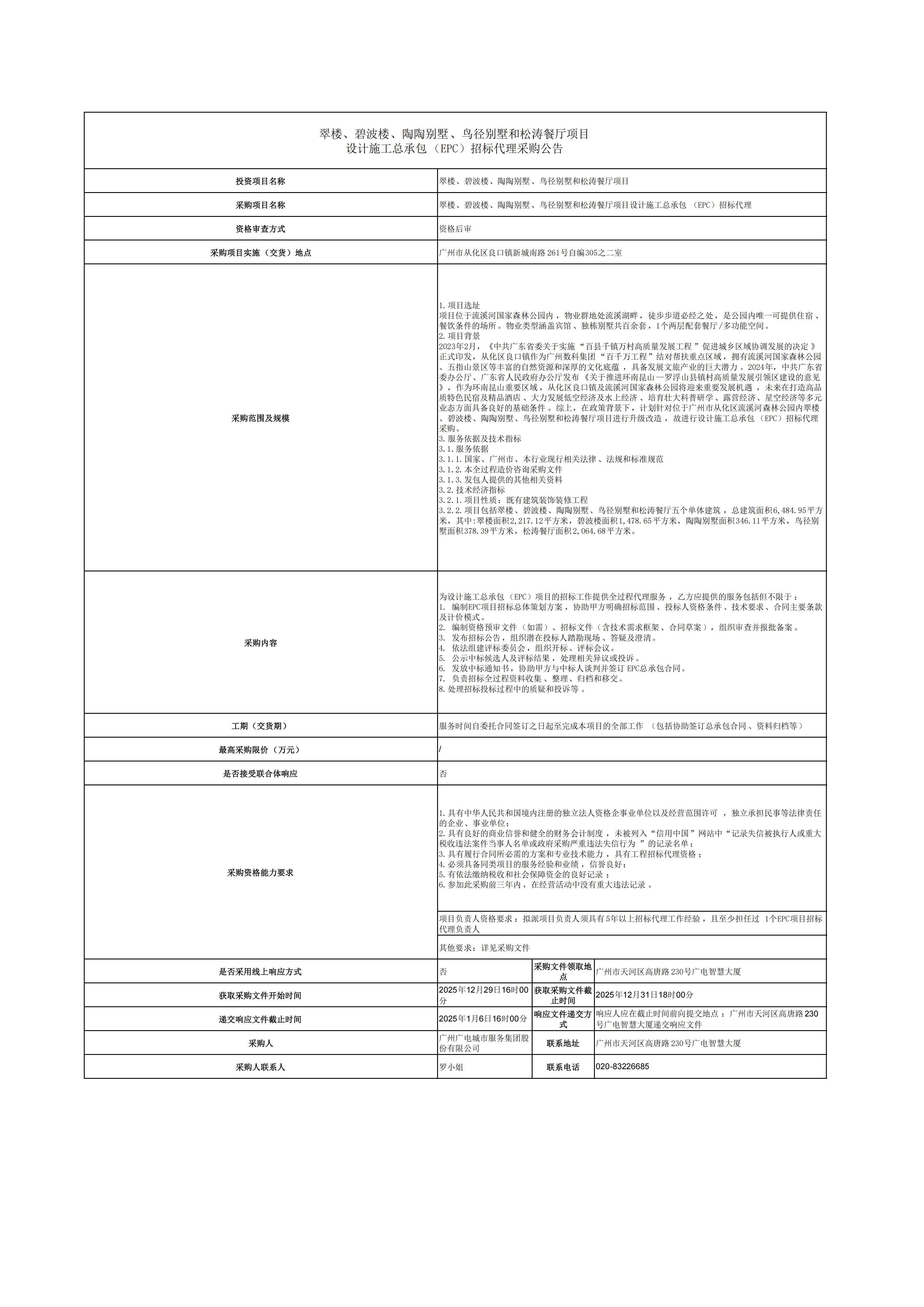 翠楼、碧波楼、陶陶别墅、鸟径别墅和松涛餐厅项目设计施工总承包(EPC)招标代理采购公告